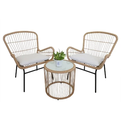 - · [Great Quality and Value] The wicker chairs and table are wowen of strong PE rattan, either healthy and environmental friendly, steel legs can effictively bear weight. Table top is made of tempered glass, which has higher stablity and safety than other glass, please rest assured to use
