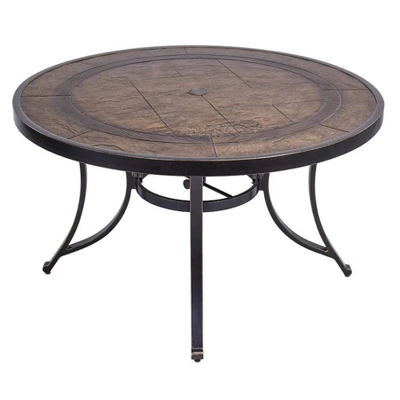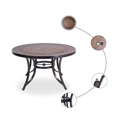 - 48-inch round table, All-Weather Faux Wood Top, sturdy, anti-tarnish, easy to clean. Stains on patio tables can be easily removed by wiping with a cloth.