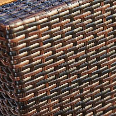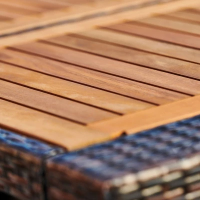 - WEATHER RESISTANT: This patio set is made of dark woven rattan that is UV and water resistant making it perfect for outdoor use. The strong Acacia wood tabletop allow rain to run through the slats.
