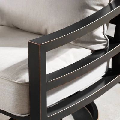 Whether your outdoor retreat is located in the mountains, on the coast, or somewhere in between, this fire table set will extend your evenings with friends and family around the fire. With this addition you can enhance your outdoor setting with even more ambiance and relaxation. This fire table set comes with an Outdoor Aluminum 44 in. Round Fire Table Set with Four Deep Seating Swivel Rocking Chairs, Fire Beads, Lid, Propane Tank Cover and Table Fabric Cover. The dimensions for the fire table are: 44″ L x 44″ W x 24.5″ H, 71.5 lbs. Each chair dimensions are: 28.3″ L x 33.8″ W x 34.2″ H, 27.3 lbs. The chair seat is 12.6″ H from the seat to the floor.