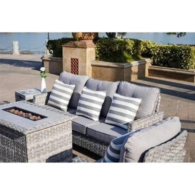 Create a cozy and relaxing outdoor lounge area in your backyard with this ultra-comfortable and stylish patio furniture conversation set with a fire pit coffee table. Enjoy a beautiful summer night outside with friends and family on your outdoor patio with complete comfort and relaxation. The unique feature of a stainless-steel charcoal fire-pit, the best high-quality hand-woven rattan, and luxurious quick dry-foam cushions will add luxury and sophistication to your garden. This cozy sectional sofa sets freely rearrange into different combinations for different occasions in your backyard. They can be used for your outdoor patio, porch, backyard, balcony, poolside, garden and other suitable spaces in your home. The true beauty of this outdoor wicker furniture set is that it’s low-maintenance, frostproof, rust-resistant, and weather-resistant, allowing you and your family to enjoy its comfort for many years to come. This rattan outdoor furniture set has been carefully designed to withstand any test of elements. Our outdoor patio furniture conversation sets are designed with form and function in mind to help you create the outdoor space in your backyard you have always dreamt of.