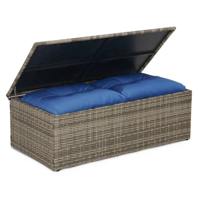 This product showcasing one 3-seater sofa, 1 loveseat, 2 armchairs, 1 coffee table. Perfect for seating up to 7-people, this weather-resistant set is crafted from resin wicker rattan and is paired with polyester blend-upholstered cushions. Use this coffee table’s storage space to stow spare all-weather pillows and cushions, then invite guests over to enjoy cocktails and conversational fresco.