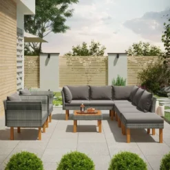 This product showcasing one 3-seater sofa, 1 loveseat, 2 armchairs, 1 coffee table. Perfect for seating up to 7-people, this weather-resistant set is crafted from resin wicker rattan and is paired with polyester blend-upholstered cushions. Use this coffee table’s storage space to stow spare all-weather pillows and cushions, then invite guests over to enjoy cocktails and conversational fresco.