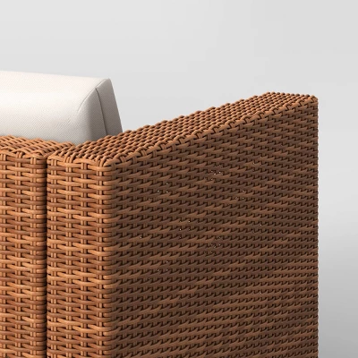 Lounge in style on your patio or deck or in your backyard with this Brookfield Steel Wicker Loveseat from Threshold™. Made with a metal frame, this outdoor loveseat is made from all-weather, rust-resistant wicker to help it withstand the elements. Featuring a low-floor design, this outdoor wicker loveseat features padded deep seat and back cushions for comfortable seating for up to two people, while the high and wide armrest helps rest your hands and arms comfortably. Coordinate it with a wicker sofa, chairs and an end table to transform the look and feel of your outdoor seating nook.
