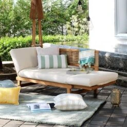 Cambridge Casual Auburn Teak & Wicker Outdoor Patio Daybed With Cushion Brown/Beige