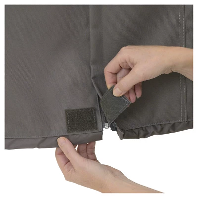If you live in an area where you can’t enjoy your patio furniture year-round, invest in a cover that will protect your tables and chairs from wind, snow and mildew. The Ravenna Loveseat Cover from Classic Accessories is a high-quality outdoor furniture cover that will keep your wicker, wooden or metal loveseat secure and unharmed. The crack- and water-resistant loveseat cover shuts out snow and rain, in addition to wind, with unique side vents that keep the cover from blowing up in strong winds. Adjustable hem cord, straps and handles let you find the best fit to keep your furniture in place through the winter.