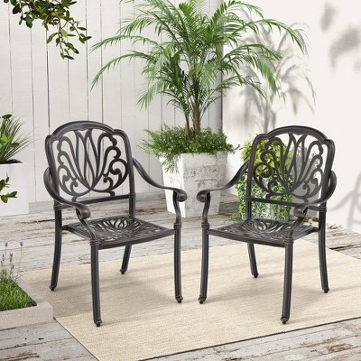 - Weather Resistance: Made of selected cast aluminum, these patio dining chairs are rustproof to withstand changing weather for better outdoor performance.