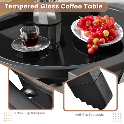 - Functional Coffee Table: The round coffee table with compact size is perfect for you to put drinks and snacks. Plus, the smooth and easy-to-maintain tempered glass tabletop is firmly fixed by 6 non-slip bumpers. And the anti-slip footpads are designed for higher stability.
