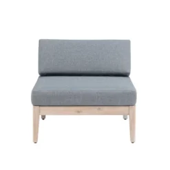 Redefine your patio, porch, or roof deck with this boho style sectional set. Two matching loveseats, a connecting corner chair and a coffee table are made of solid acacia, a dense water-resistant wood that lasts through the seasons. A natural oil stain highlights knots and patterns in the woodgrain, offering a warm rustic look to the modern frames, as well as extra protection. Weather resistant olefin fabric in beige is fitted over high-density cushions for comfortable support and a neutral colorway that agrees with settings new and old. At the center, the slatted top coffee table pairs seamlessly with the sectional and provides plenty of space for drinks and snacks.Sectional:Overall Width: 84.75”Overall Depth: 32”Overall Height: 32”Floor to Seat Height: 16”Seat Depth: 20.5”Seat Width: 51.25”Arm Height from Seat: 7.75”Table: Overall Width: 31.5”Overall Depth: 31.5”Overall Height: 16.75”