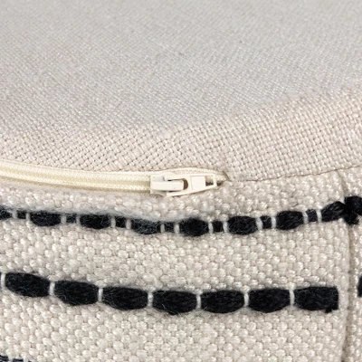 This outdoor woven pouf with thermocol beans filling is the perfect addition to any outdoor living area. This seating or foot rest will take up minimal space while adding comfort and seating space to your outdoor living. It will surely withstand the elements as it is designed with durable and weather-resistant construction. The detailed woven design will blend perfectly, as the neutral cream and black tones compliment most color palettes. Whether you’re relaxing out on your patio or entertaining guests on your deck, this pouf is a must have.Product Features:Tall cylindrical outdoor pouf Mosaic cream and black woven knitAdorned with cream braid details Thermocol beads provide plushness and cozinessMultipurpose, can be used as a footstool or added seatingSuitable for indoor and outdoor use Care instructions: use soap or detergent, rinse with clean water and allow to air dryDimensions: 18″ high x 18″ diameterMaterial(s): PET polyester