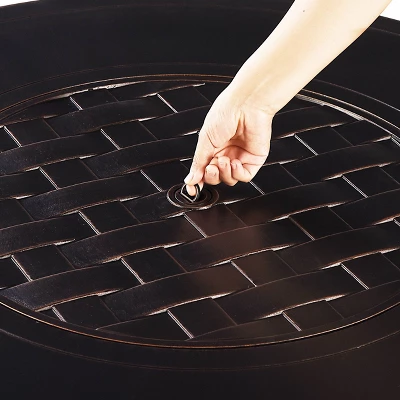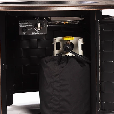 Oakland Living 5pc Deep Seating Swivel Aluminum Outdoor Patio Fire Pit Dining Set With 44″ Round Fire Table With Weave Pattern Copper