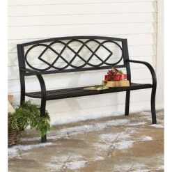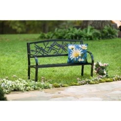 Evergreen Beautiful Springtime Colorful Black Rocking Brushed Metal Garden Bench – 43x33x37 In