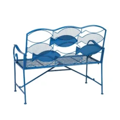 Evergreen Beautiful Springtime Colorful Blue Fish Shaped Metal Garden Bench – 44x20x36 In