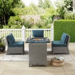 Kalo 5pc Wicker Chat Set With Fire Table – Gray/Light Gray/Dark Gray – Christopher Knight Home
