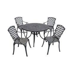 Sedona 46″ 5pc Outdoor Dining Set With Highback Chairs – Black – Crosley