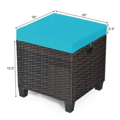 Costway 2PCS Patio Rattan Ottoman Cushioned Seat W/ Foot Rest Turquoise