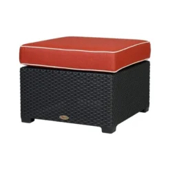 Costway Set Of 2 Patio Rattan Ottoman Footrest Cushions Wooden Handle Off WhiteBrownRedNavy