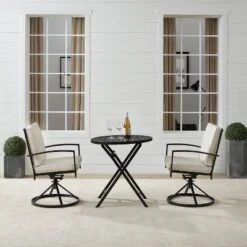 3pc Kaplan Outdoor Steel Bistro Set Oatmeal/Bronze – Crosley