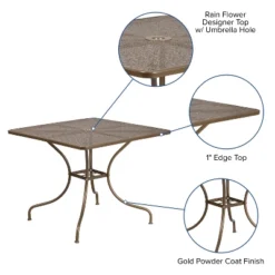 Emma And Oliver Commercial Grade 35.5″ Indoor-Outdoor Steel Patio Table With Umbrella Hole