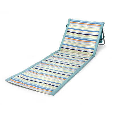 The “Vacation Mode” Beachcomber Beach Mat, a lightweight and portable folding mat with a fully-padded and adjustable backrest set on an inner steel frame, is the perfect compromise between a beach chair and a towel. Ideal for the sunbather who wants to lay out without missing all the action! A large zippered pocket holds your magazines, and the shoulder strap makes this beach lounger easy to carry anywhere.
