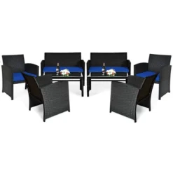 Costway 8PCS Patio Rattan Furniture Set Cushioned Chair Sofa Coffee Table WhiteNavyTurquoiseRed