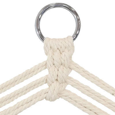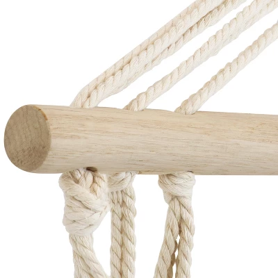 • GOOD QUALITY: The seat and hanging ropes on this hammock swing are made from a comfy and durable 65% cotton fiber and 35% polyester cover with a polyester fiber filling. It also features a sturdy birch hardwood spreader bar.