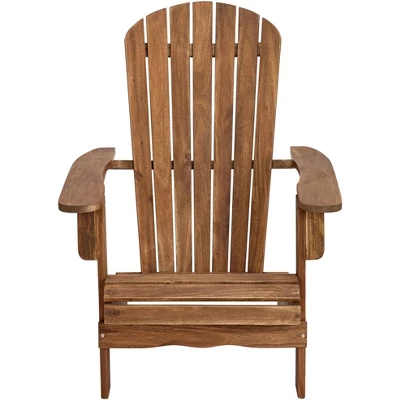 Bask outdoors in warm weather with this picturesque Adirondack chair. It has a natural oil finish over acacia wood construction and a slat design for the seat and back, resulting in a simple yet charming rustic look. The design is perfect for lounging at the poolside or in the backyard.
